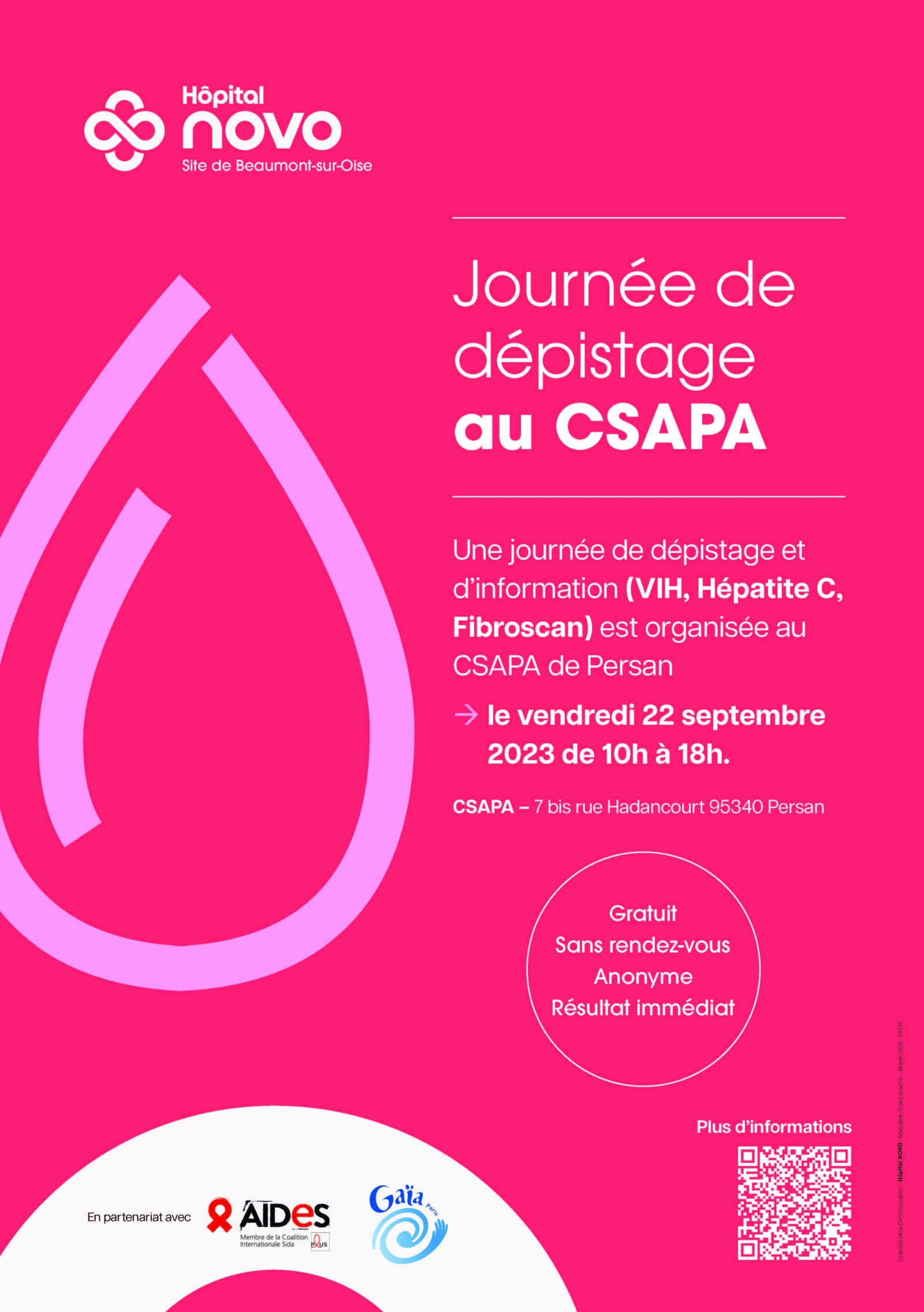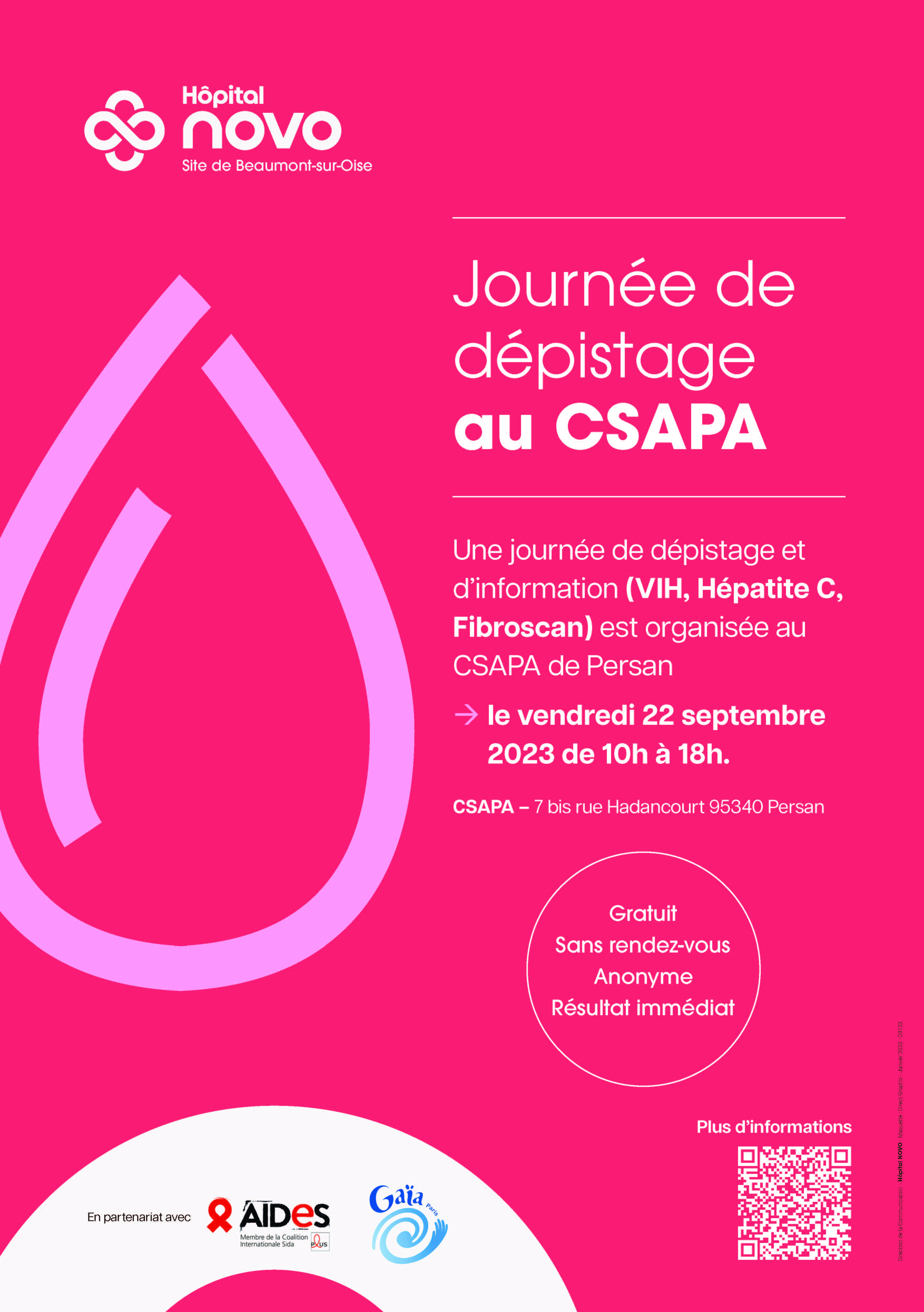 Une journée de dépistage et d’information (VIH, Hépatite C, Fibroscan) est organisée au CSAPA de Persan vendredi 22 septembre 2023 de 10h à 18h.