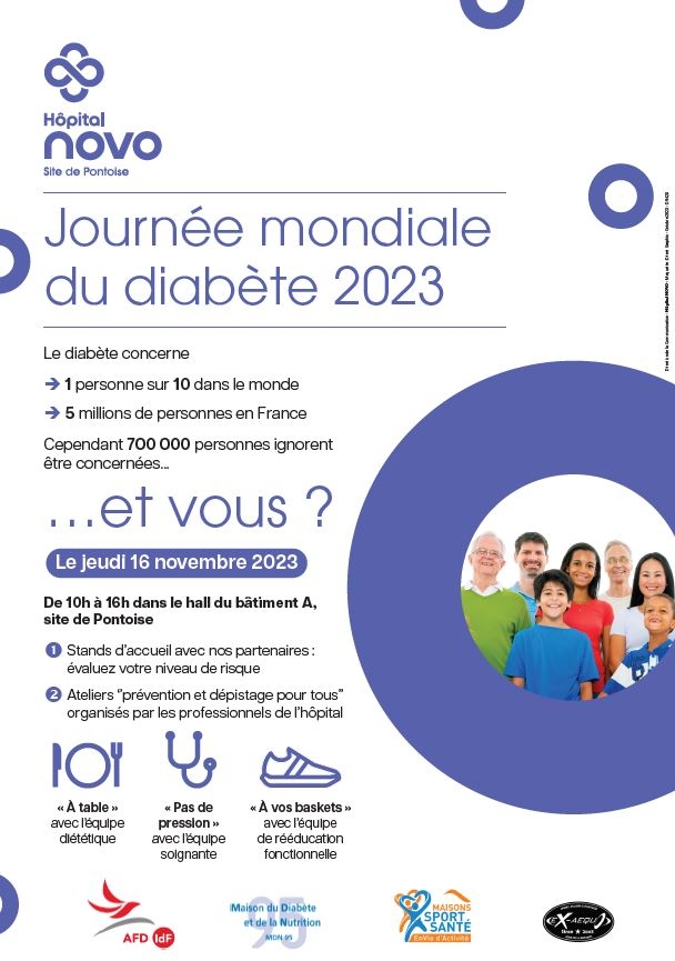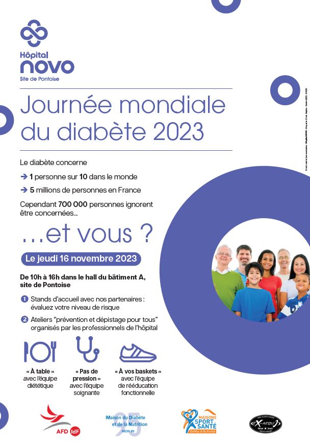 Une journée de prévention et de dépistage du diabète est organisée le jeudi 16 novembre 2023, de 10h à 16h, sur le site de Pontoise, dans le hall du Bâtiment A.